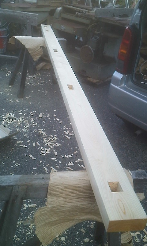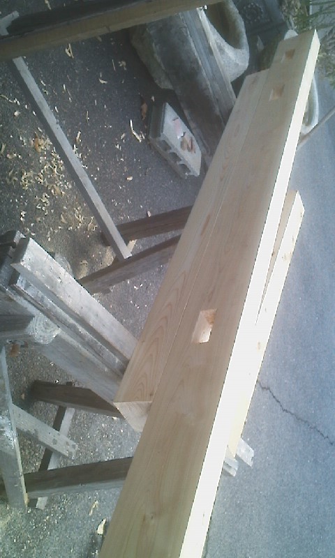 今日で、二本柱のほぞ穴彫りも完了した。あとは、他の材料が手に入れば、わりとはやく出来上がる。あとは連結部を考えないといけない。これは金属製で溶接も必要なため鉄工所を探さないとだなあ。 年内営業なるかな?