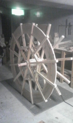 連結部分などは、鉄だが、構造には桧と松を使い、木製トレーラだ。 強度的には問題ないと思うが重量は鉄より重い。 ただ、重心が低くなるため、横転の危険は減ったと思う。車軸間の距離も従来より、広くとったことも効果あると思う。 次は水車だ!とにかく日々頑張るのみ。 |